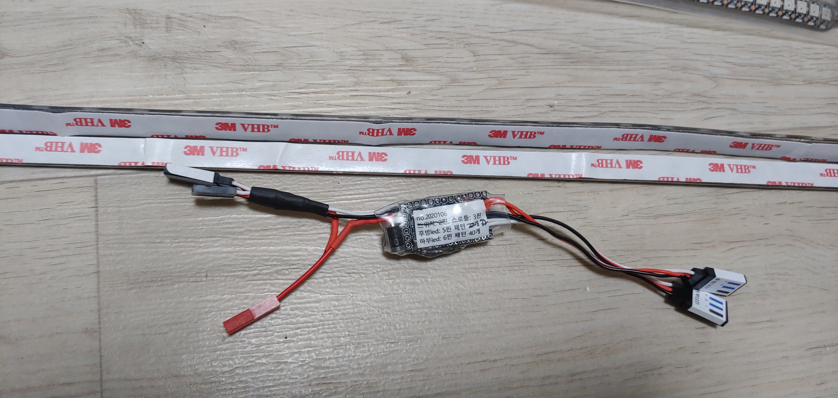 하부는 60발 LED 40개씩 2줄 들어갑니다. IP65 방수되는 LED지만 스페셜 작업 요청으로 투명수축튜브 씌운후 3M 아크릴 양면테이프(회색)를 부착했습니다. 기본적으로 붙어있는 테이프는 잘 떨어지는데 아크릴 양면 테이프는 강력하게 붙어서 잘 떨어지지 않습니다. 글루건 작업을 안해도 됩니다!