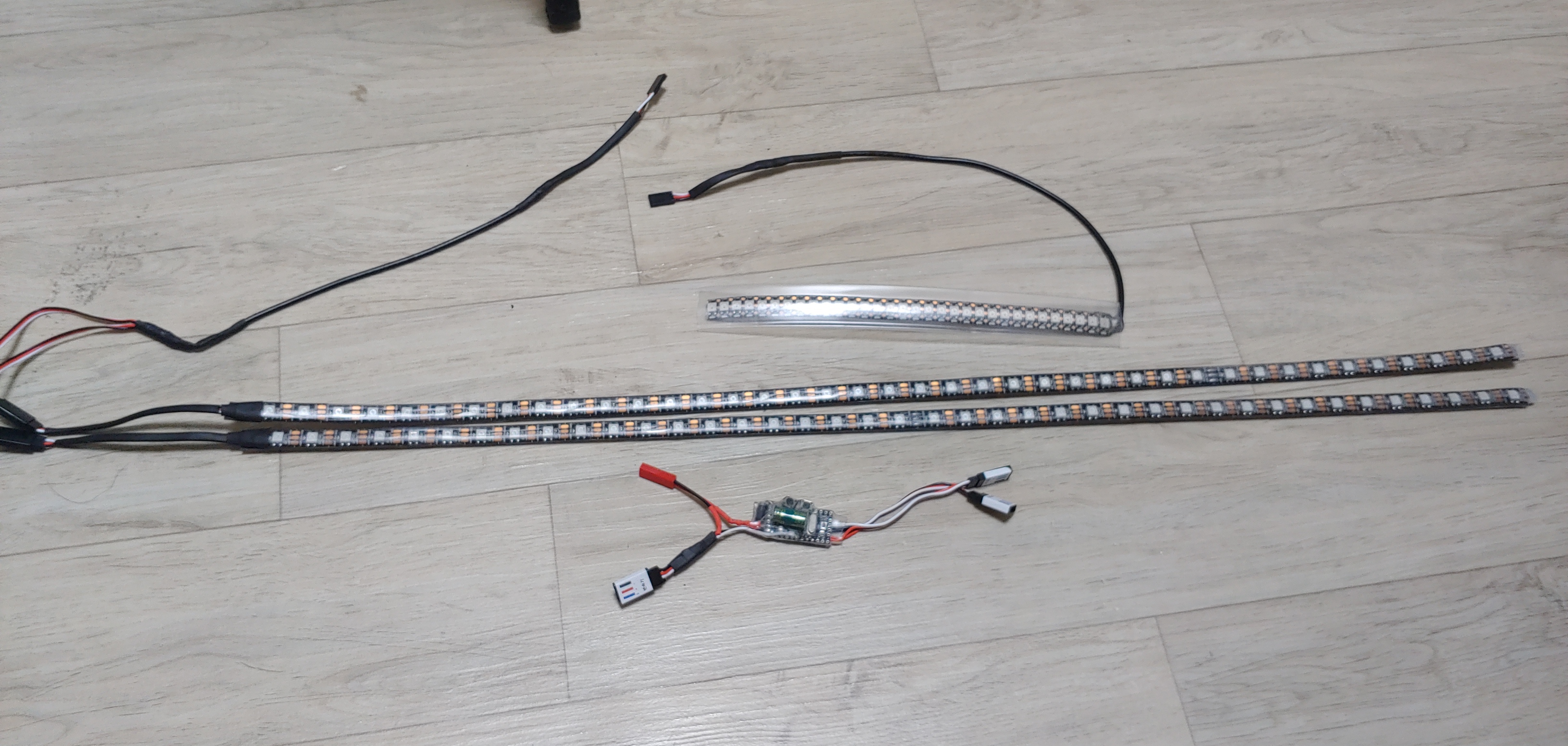 후방은 모터마운트 가로봉에 붙여서 LED+봉을 투명수축튜브로 씌우는 형태입니다. 봉길이 23cm 기준으로 144발 LED 32개 들어갑니다.