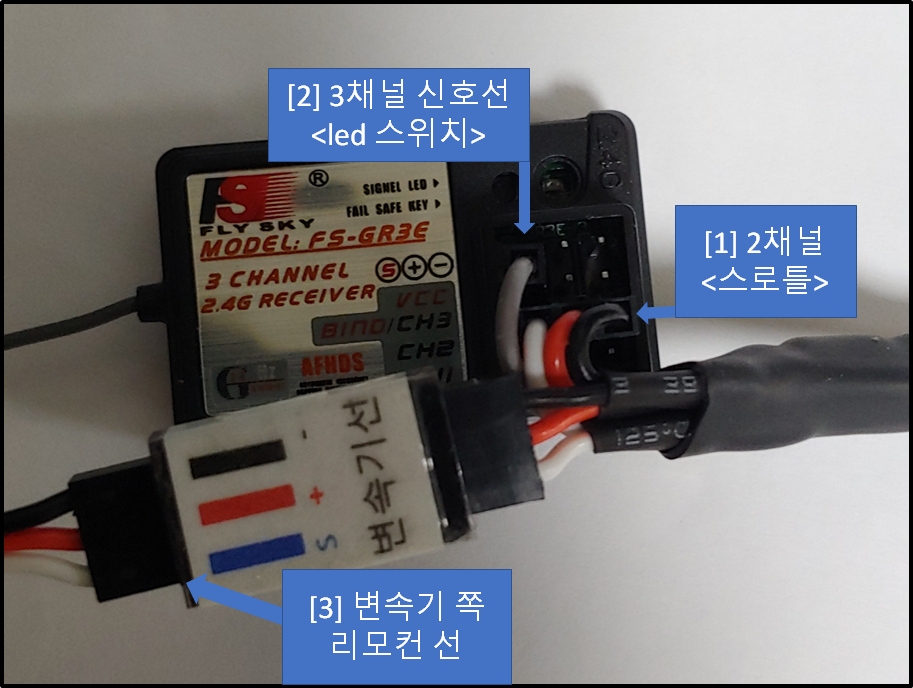[2] 리모컨의 3채널로 LED 온/오프 기능을 이용할시 신호선을 3채널 S 핀에 꽂는다.